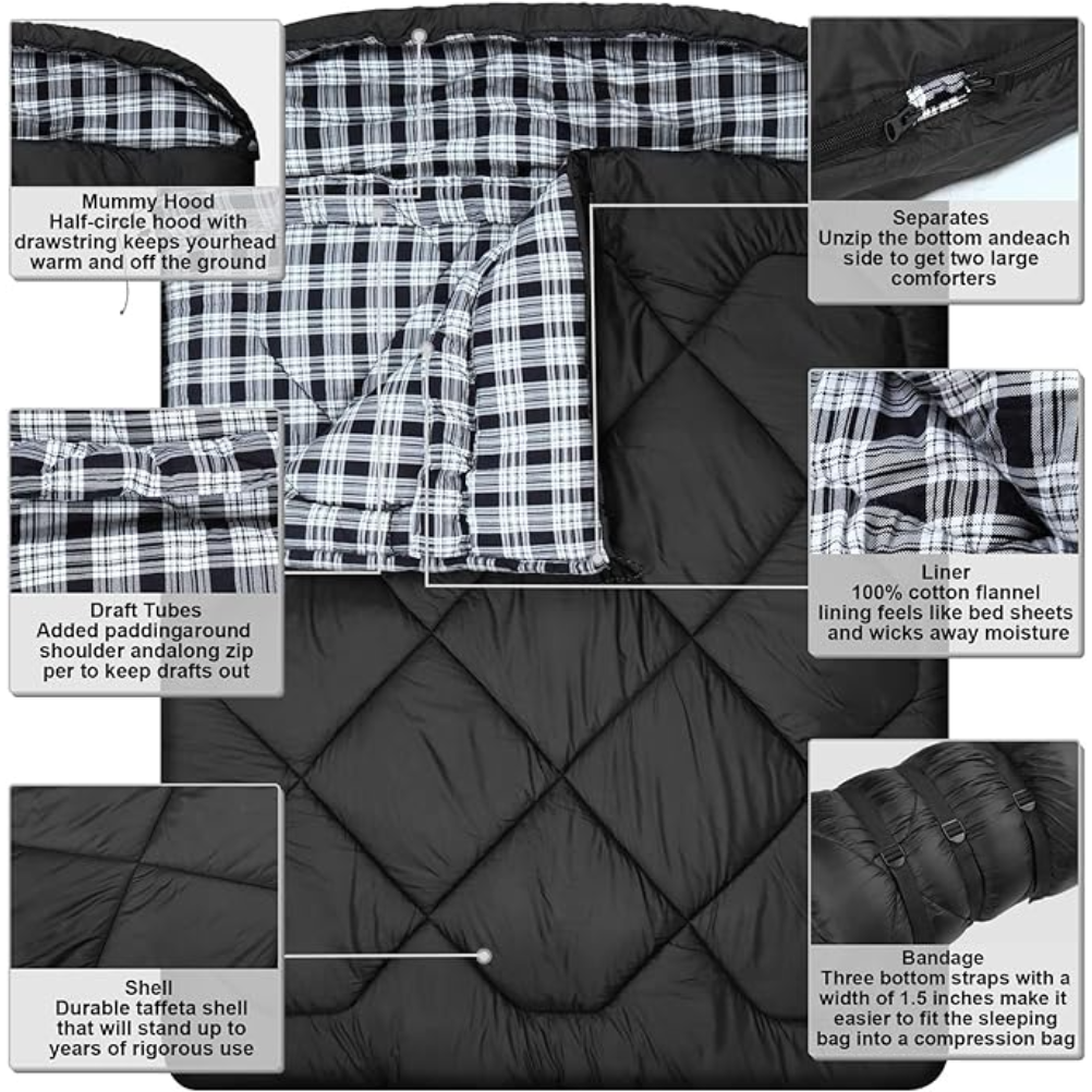 El Saco de dormir Doble Mcota pertenece a la categoría de sacos de dormir y se identifica con la marca Mcota. Se presenta en formato doble, con una estructura unificada de tipo saco en una sola pieza. Su diseño corresponde a un saco de dormir de uso compartido, diferenciado de los modelos individuales por su configuración doble dentro de un mismo cuerpo. El producto está destinado al descanso y a la cobertura corporal durante su utilización, manteniendo la forma característica de los sacos de dormir. La denominación comercial del artículo es Saco de dormir Doble Mcota. No incluye en esta descripción datos de variaciones de color ni grupos de talla, ya que pueden formar parte de variantes del mismo producto. La información indicada se limita a la identificación del artículo, su formato doble, su categoría y su estructura general como saco de dormir de una sola pieza.